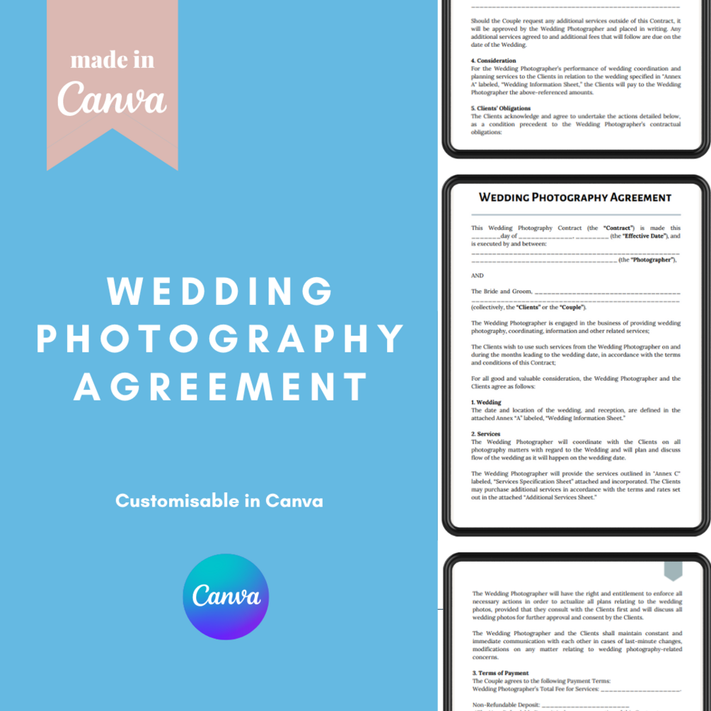 Wedding Photography Agreement | Lawyer-drafted | Customisable